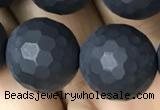 CAA2440 15.5 inches 10mm faceted round matte black agate beads