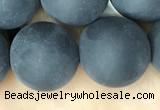 CAA2452 15.5 inches 14mm round matte black agate beads wholesale