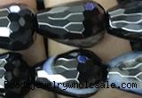 CAA2656 15.5 inches 10*30mm faceted rice banded black agate beads