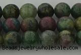 CRO1152 15.5 inches 8mm round matte green dragon serpentine jasper beads