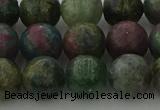 CRO1153 15.5 inches 10mm round matte green dragon serpentine jasper beads