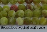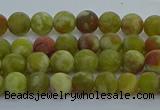 CRO1150 15.5 inches 4mm round matte green dragon serpentine jasper beads
